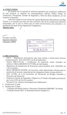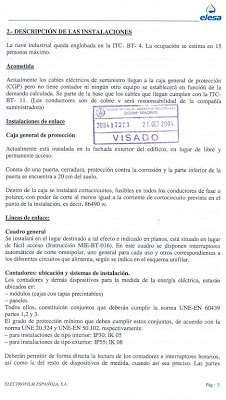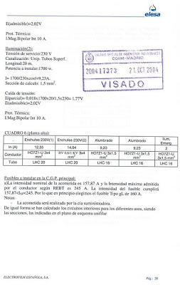 -Sin considerar además que los cálculos eléctricos deben hacerse según dicta la ITC BT 29 del Real Decreto 842/2002. Y también sin hacerle la necesaria y preceptiva clasificación de emplazamientos, así como tampoco sus planos representativos, los cuales no se los puedo mostrar a sus Ilustrísimas porque el proyecto de instalación eléctrica con número de visado 200417373 carece de ellos.